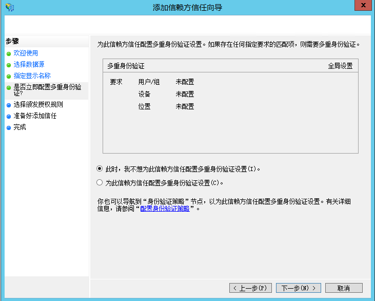 6.       选择 不配置多重身份验证, 点击 下一步: