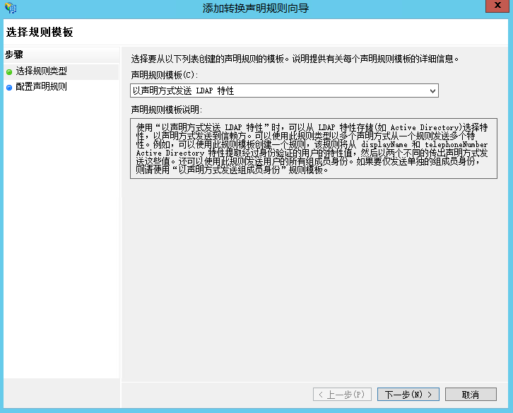 5.       选择以声明方式发送LDAP特性, 点击 下一步