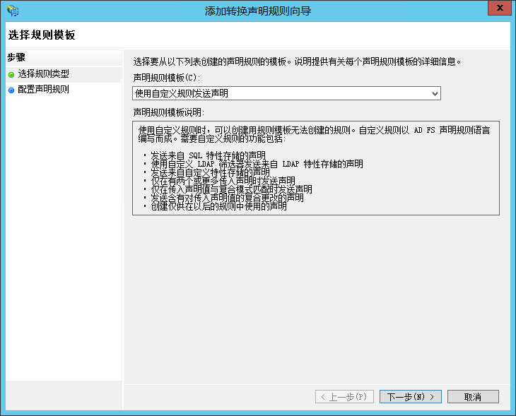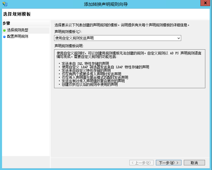11.    选择 使用自定义规则发送声明, 点击下一步