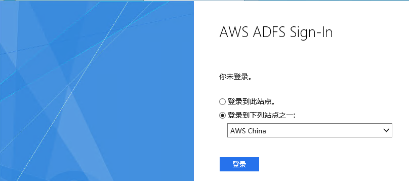 1.       首先用户访问和AWS做了集成的ADFS站点 (https://ADFS/adfs/ls/IdpInitiatedSignOn.aspx)