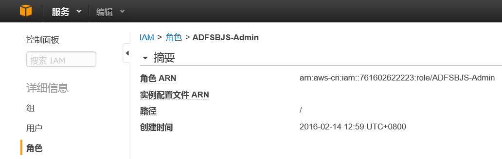 => issue(Type = “https://aws.amazon.com/SAML/Attributes/Role”, Value = RegExReplace(c.Value, “AWSBJS-“, “arn:aws-cn:iam::761602622223:saml-provider/ADFS,arn:aws-cn:iam::761602622223:role/ADFSBJS-“));