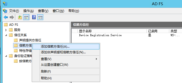 1.       打开ADFS管理界面, 选择信任关系-信赖方信任