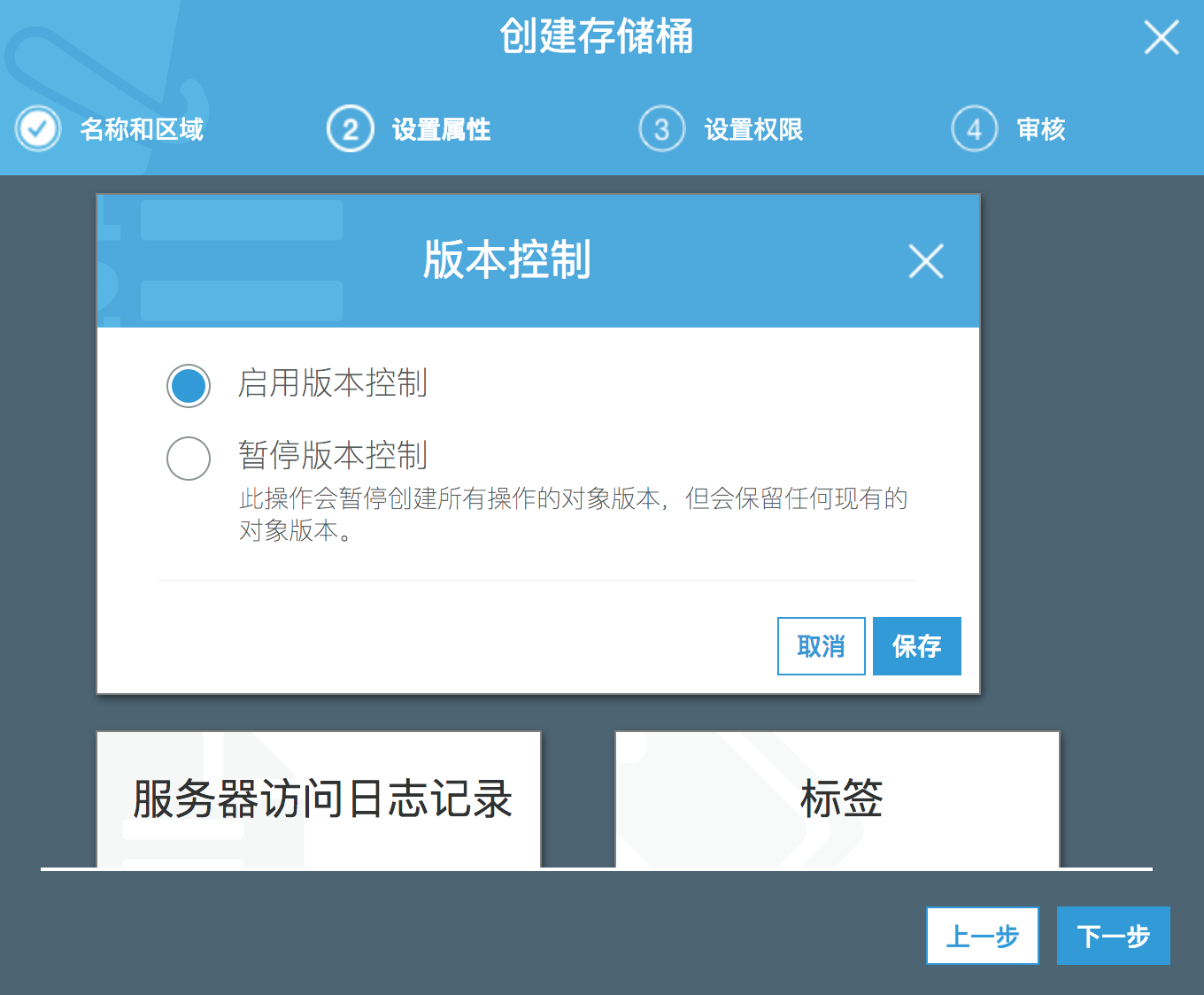 创建一个S3桶用来存放Deploy阶段CloudFormation使用的脚本模版,创建桶时选择和以上服务同一Region,并且打开桶的版本控制。