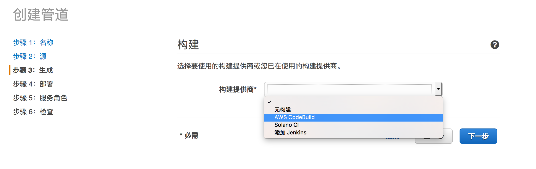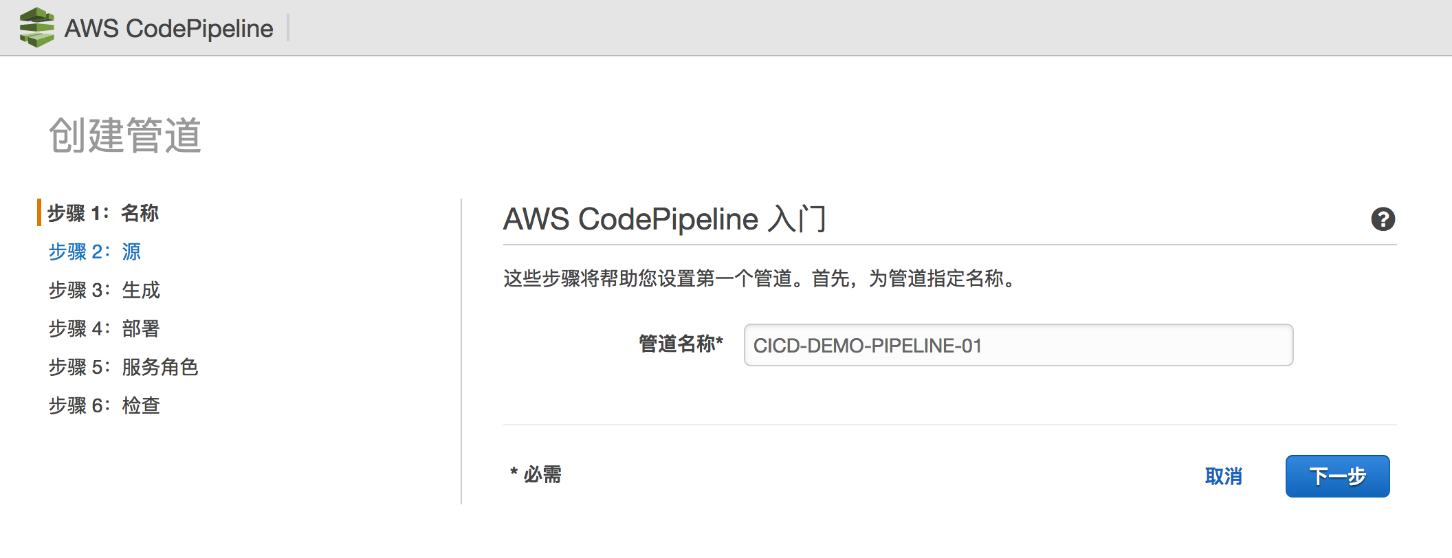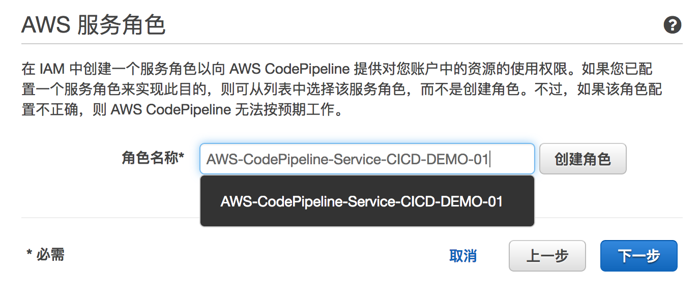 创建好后画面回到Pipeline,IAM创建好的Role已经显示在里面。