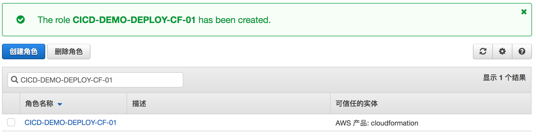 在IAM界面创建好后选择Role。