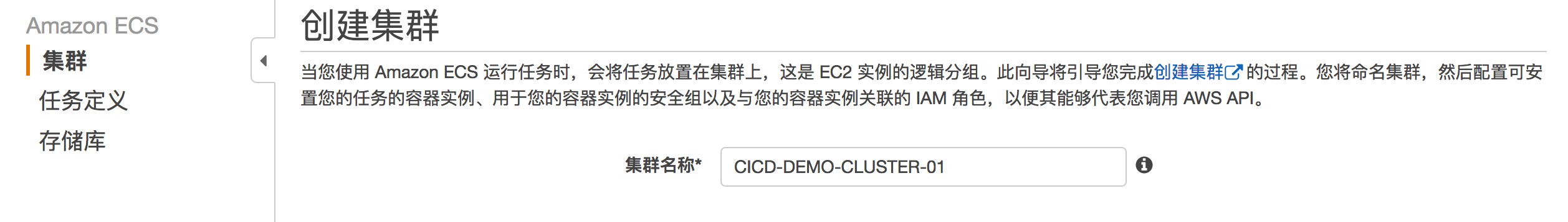 在ECS的界面下,创建集群