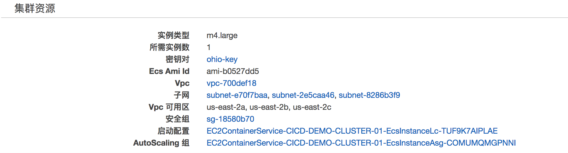 TargetGroup,即建立好的宿主机集群的应用负载均衡器的ARN。