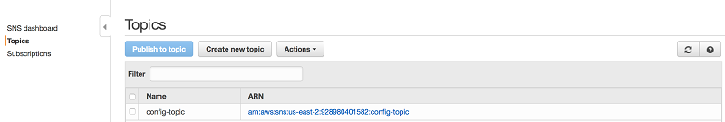 9. 如果您创建了新 Amazon SNS 主题,请打开 Amazon SNS 管理控制台并找到您创建的主题:AWS-config-08