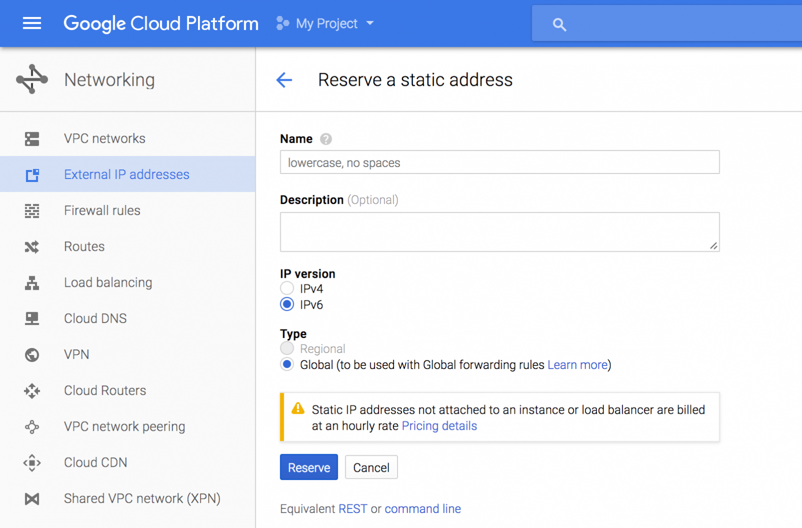 此外,目前使用负载均衡是唯一能让其原生支持 IPv6 的方法。具体可以参见其文档:IPv6 Termination for HTTP(S), SSL Proxy, and TCP Proxy Load Balancing