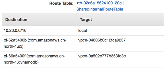 | pl-xxxxxx (com.amazonaws.cn-north-1.s3) | vpce-xxxxxxx |