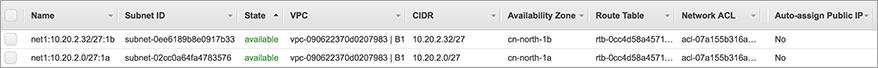 - 每个子网包含4个部分,之间使用“:”分隔 – 功能: IP 地址数量:可用区:子网类型