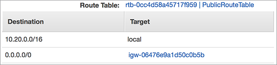 | 0.0.0.0/0 | igw-xxxxx (Internet Gateway) |