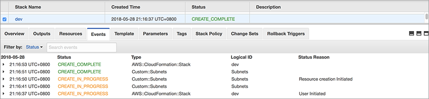 - 选择 Next,直至 AWS 资源开始创建