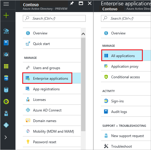 - 在 Azure 门户中打开应用程序视图,导航到目录视图,接着转到“企业应用程序”,并单击“所有应用程序”。