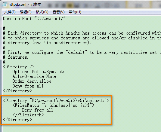 在Apache中,没有Windows 下IIS的图形管理界面,我们需要手工修改下apache的配置文件,来进行目录脚本的执行权限的设定。