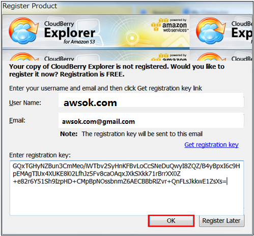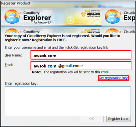 cloudberry13注:「Display Name」不可以输入任意的名字,而是输入Amazon S3的用户名,然后输入该用户的「Access key」、 「Secretkey」。