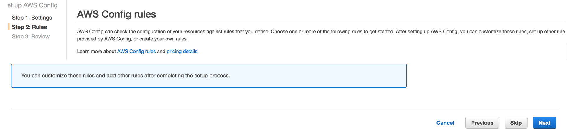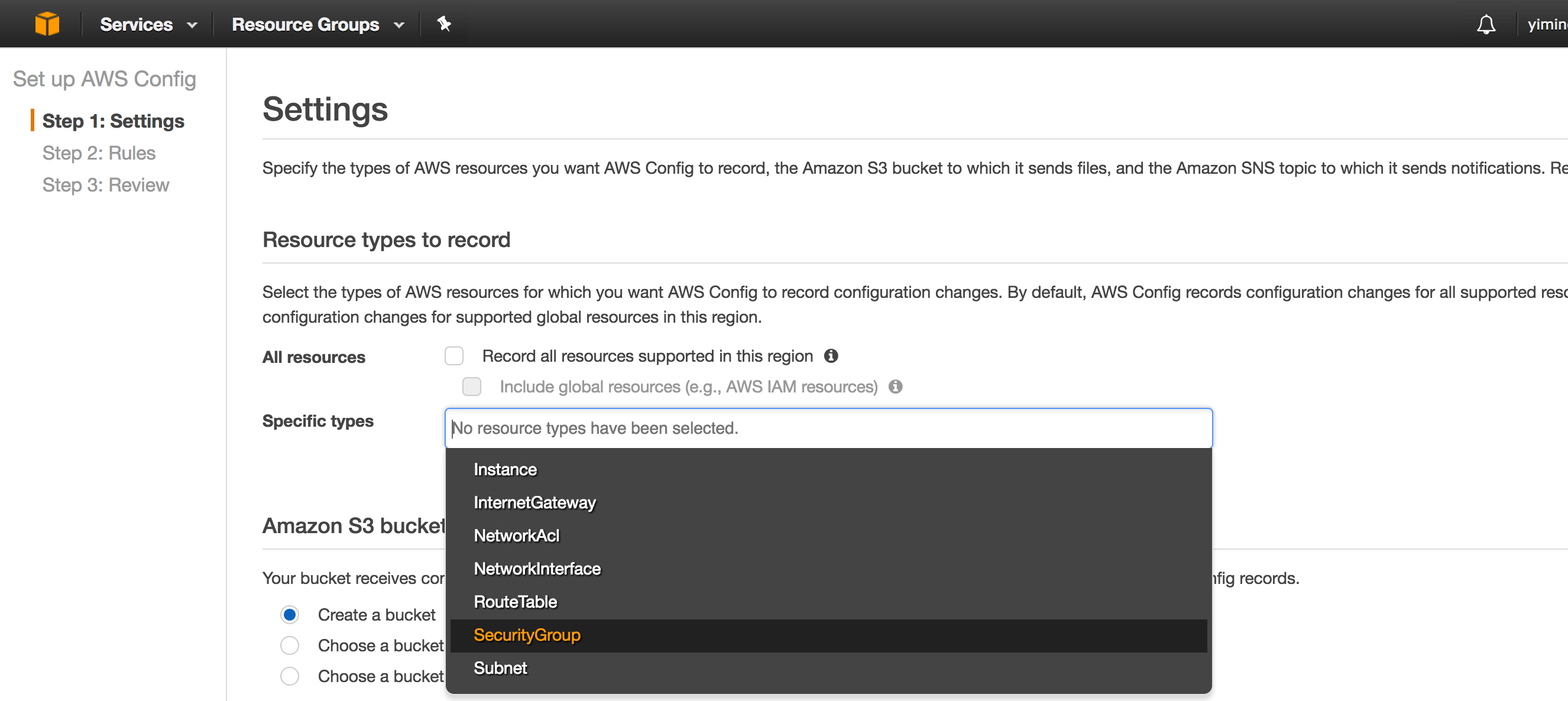 b. 配置AWS Config Setting。在AWS 控制台,打开 AWS Config ,具体过程可以参考:http://docs.aws.amazon.com/zh_cn/config/latest/developerguide/gs-console.html