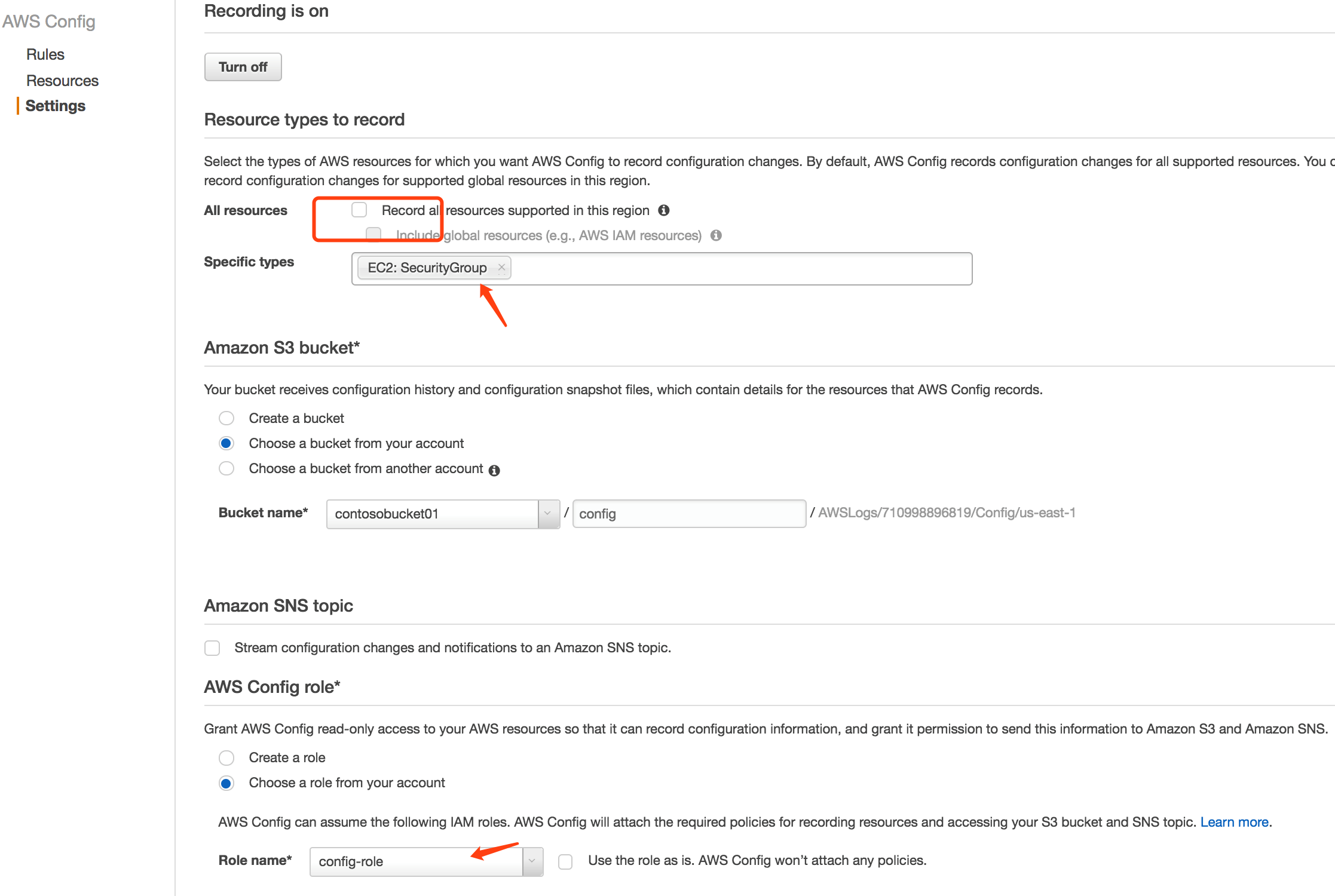 在上述测试过程中,大致可以了解AWS Config的工作机制和配置流程,下面进一步对一些场景的应用场景做进一步说明。