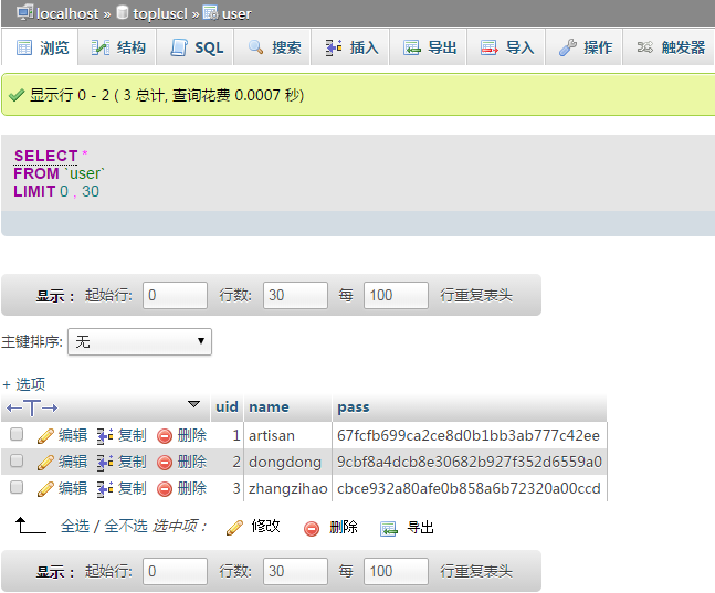 3. 不难看出,name下及代表用户名,pass下是使用”md5”函数加密后的密码。我们选中要修改密码的用户,点击”编辑”。
