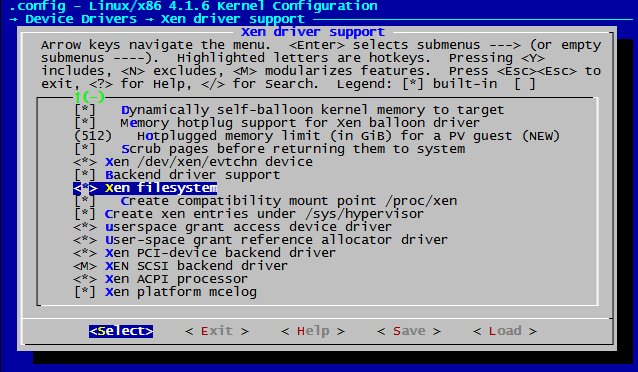 由于阿里云目前大部分机器还是xen环境的,所以阿里云环境下编译和普通系统相比,需要增加xen guest support,如下(menuconfig下如果找不到配置,可以个vi一样,通过”/”方式搜索):