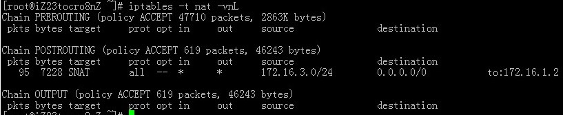 1 iptables -t nat -I POSTROUTING -s 172.16.3.0/24 -j SNAT --to-source 172.16.1.2