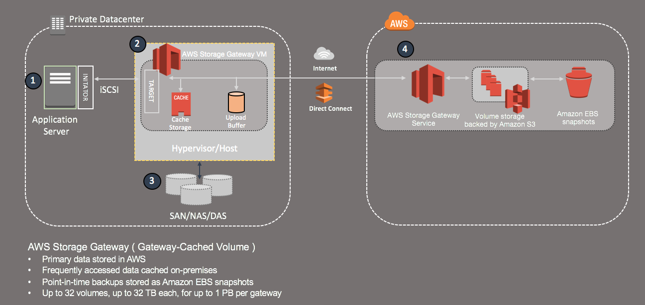 示图6:AWS存储网关服务架构示意图(Gateway-Cached Volume)