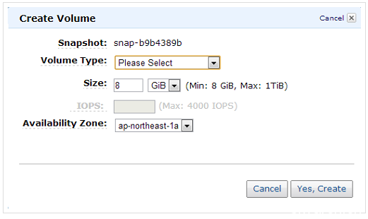 从EBS的「Snapshots」画面选择该快照,点击右键,选择「Create Volume from Snapshot」