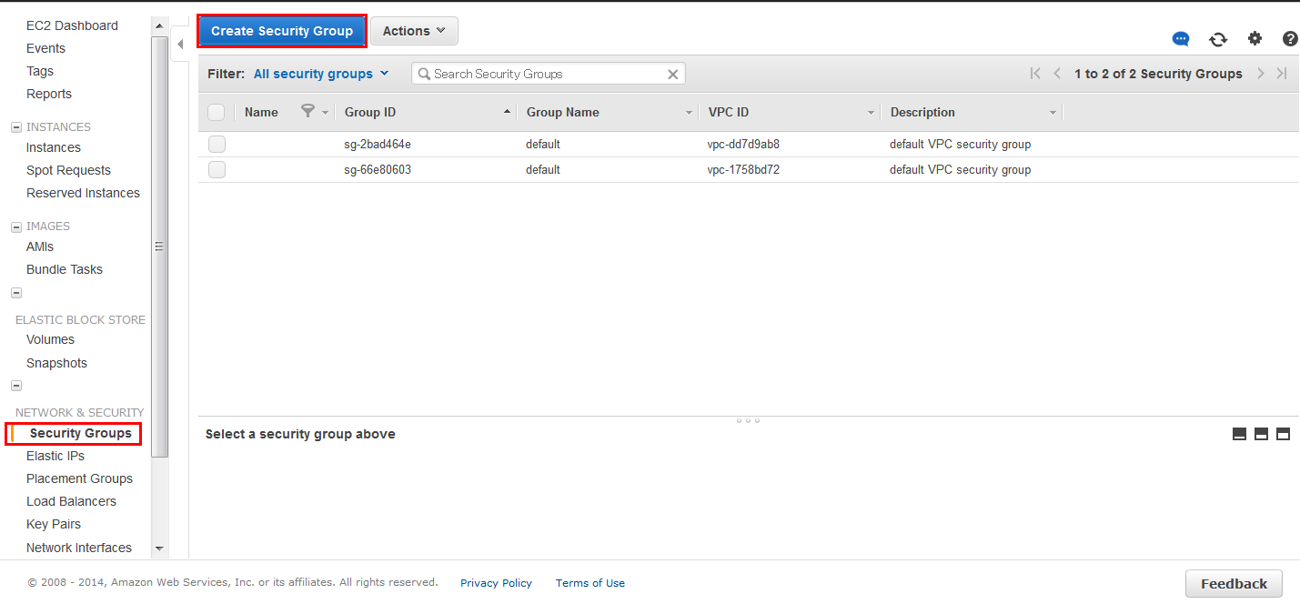 1.选择EC2中「Security Groups」后,点击「Create Security Group」;