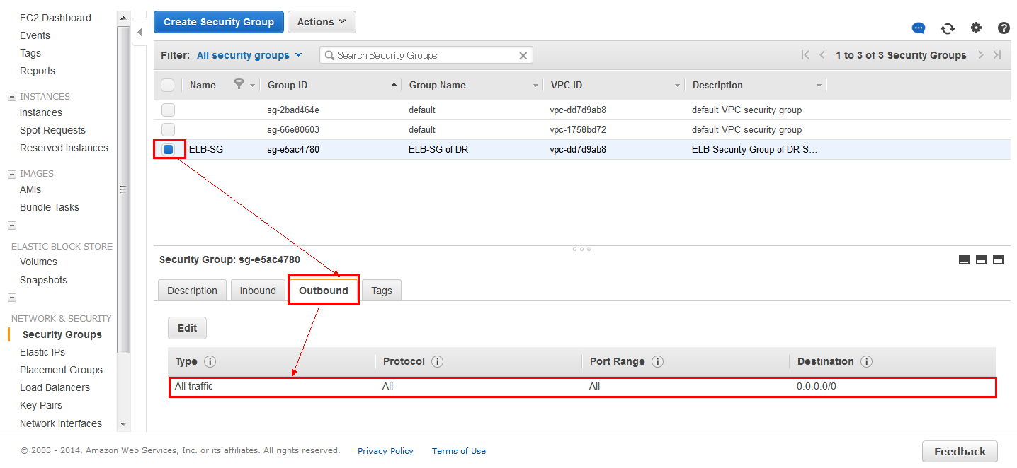 4.选择该安全组(ELB-SG),「Outbound(出站)」设定允许所有;