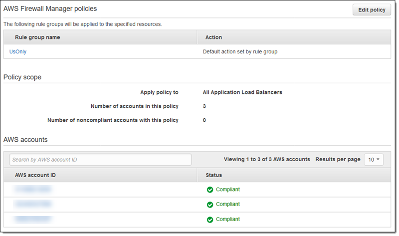 几分钟之内,Firewall Manager 就会应用该策略,并向我提供状态报告: