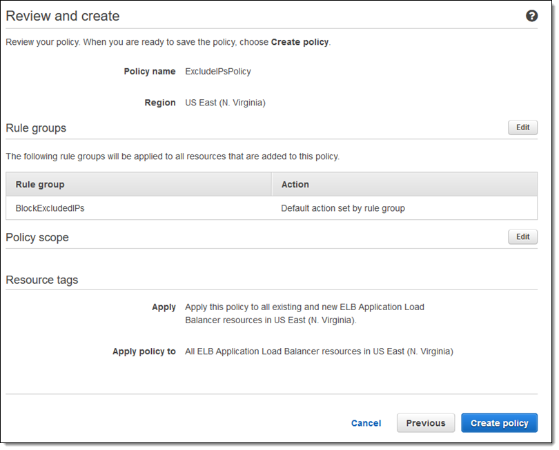 定义了策略范围之后,我单击“下一步”进行审核,然后单击“创建策略”: