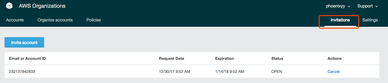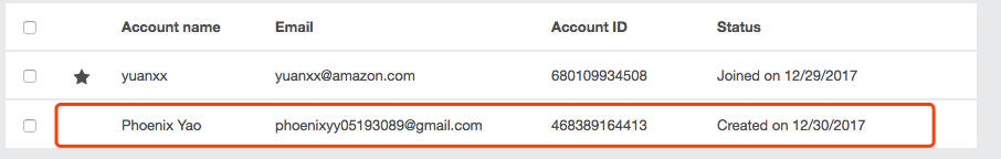 最后回到主账号下,可以看见包括Master Account,主动创建的Account以及受邀请加入的Account的信息