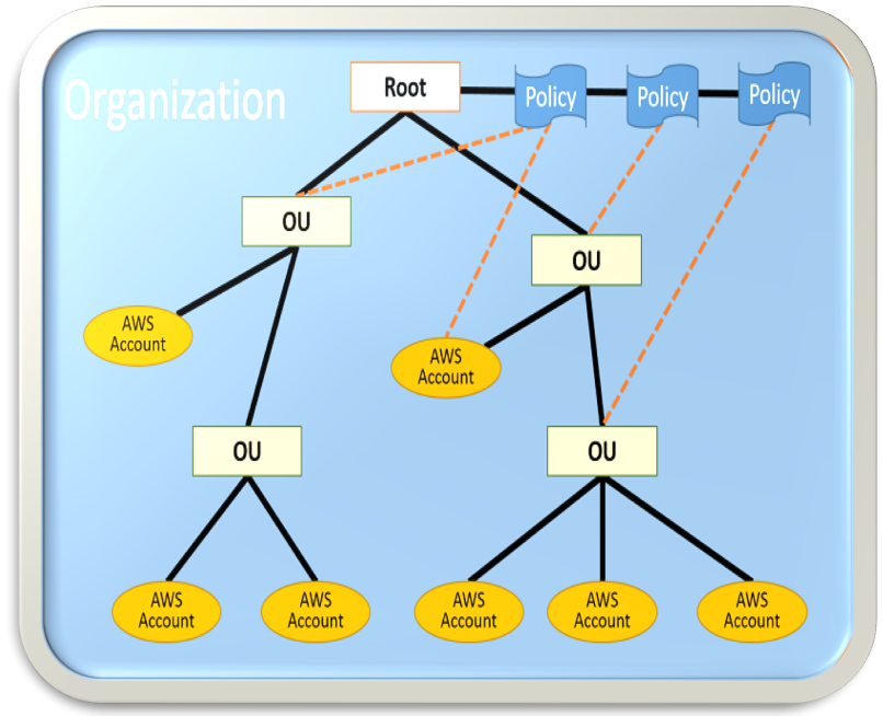 - Policy是继承关系的,也就是说OU会继承organization的policy,而AWS Account会继承OU的policy