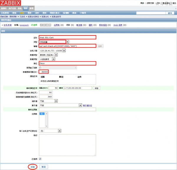 ZABBIX监控SSL证明书有效期限